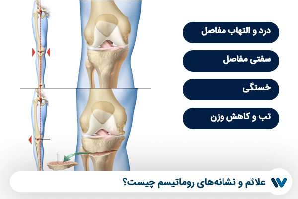 علائم روماتیسم مفصلی شامل درد و التهاب در مفاصل، سفتی صبحگاهی و خستگی هستند.