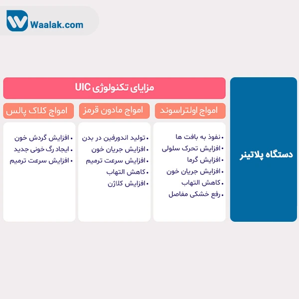کمربند پلاتینر بهترین روش برای مقابله با انواع کمردرد است. پلاتینر با مجهز بودن به تکنولوژی منحصربهفرد و پیشرفته UIC با سایر کمربندهای طبی تفاوتهای بنیادی دارد. علاوه بر ویژگیهای عمومی کمربندهای طبی معمولی، کمربند پلاتینر با ایفای نقش در تسکین درد، کاهش التهاب، بهبود عملکرد حرکتی و توانبخشی با کمک فناوری UIC توانسته خدمات شایان توجهی را در اختیار بیماران قرار دهد. UIC نام اختصاری سه تکنولوژی جدید در عرصه درمان به نامهای اولتراسوند، انفرارد و کلاک پالس است که هر کدام از این تکنولوژیها به نحوی در تسکین انواع دردهای کمر نقشی موثر دارند