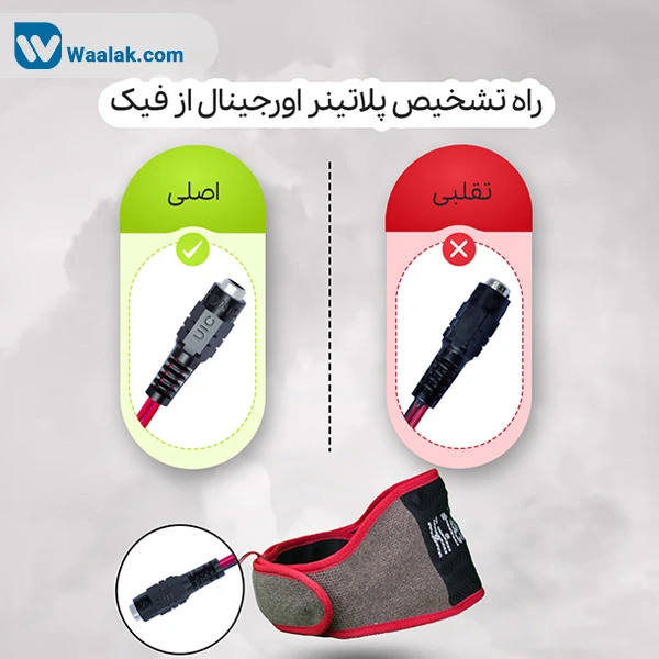 برای تشخیص کمربند پلاتینر اصلی از نمونههای تقلبی، میتوان به جزئیات کابل و سوکت دستگاه دقت کرد. کابل اصلی دستگاه دارای نام انگلیسی "ZAISTRONIC TECHNOLOGY UIC" است. همچنین بر روی سوکت، در بخشی از آن نام "UIC" و در اطراف حلقه سوکت کلمه "ZAISTRONIC" حک شده است. در مدلهای تقلبی این دستگاه، هیچ نشانی از برند بر روی کابل و سوکت وجود ندارد.